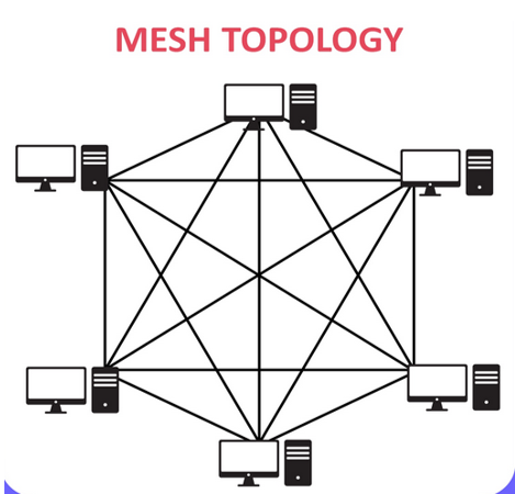 Both complete mesh and partial mesh topologies exist. In a full mesh topology, every device is connected to every other device, while in a partial mesh topology, some devices are connected to all other devices, while others are only connected to some devices.